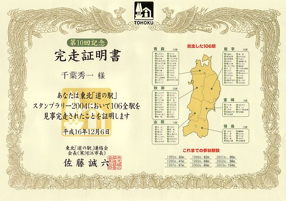 らいむぱぱの「東北道の駅スタンプラリー2004」完走注意報!!